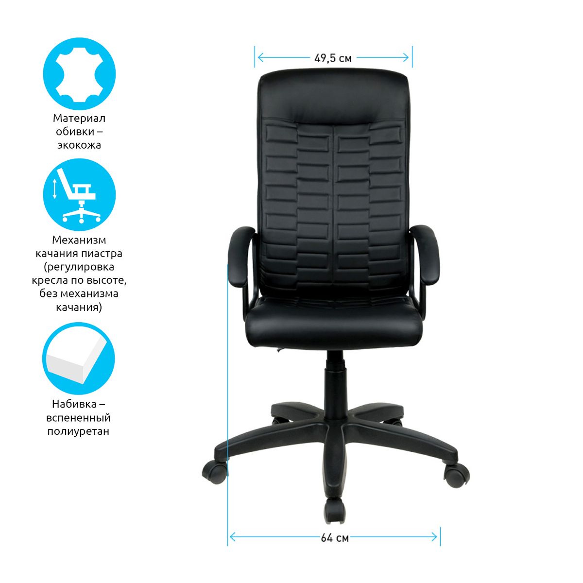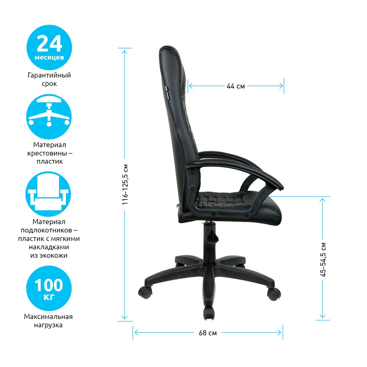 Максимальная нагрузка составляет 100 кг. Газпатрон 2 категории по стандарту Germany DIN 4550. Каркас – немонолитный, материал набивки – вспененный полиуретан, крестовина – пластик. Кресло оснащено регулировкой высоты сиденья под рост пользователя. Гарантийный срок – 24 месяца.
