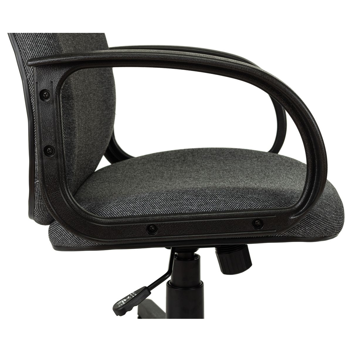Максимальная нагрузка составляет 120кг. Газпатрон 3 категории. Каркас – немонолитный, материал набивки – вспененный полиуретан, крестовина – пластик, подлокотники – пластик, материал обивки – прочная износостойкая ткань серого цвета. Механизм качания с возможностью фиксации кресла в рабочем положении, регулировка кресла по высоте под рост пользователя. Гарантийный срок – 24 месяца.