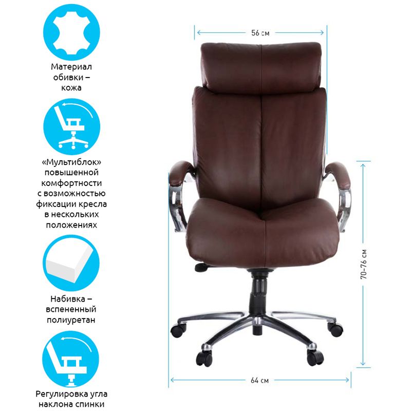 Кресло руководителя Helmi HL-ES03 "Invincible" повыш. прочн., кожа коричн., мультибл, хром, до 250кг