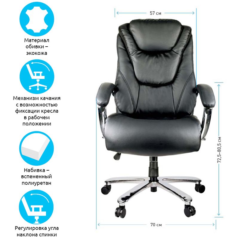 Кресло руководителя Helmi HL-ES05 "Springs" повыш. прочности, экокожа черная, хром, до 200кг