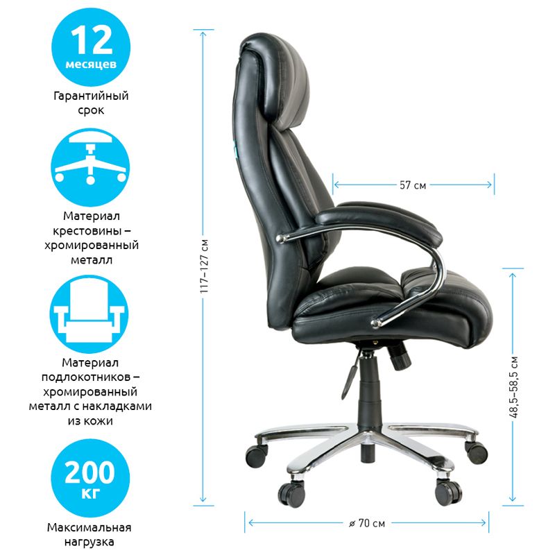Кресло руководителя Helmi HL-ES06 "Granite" повыш. прочности, экокожа черная, хром, до 200кг