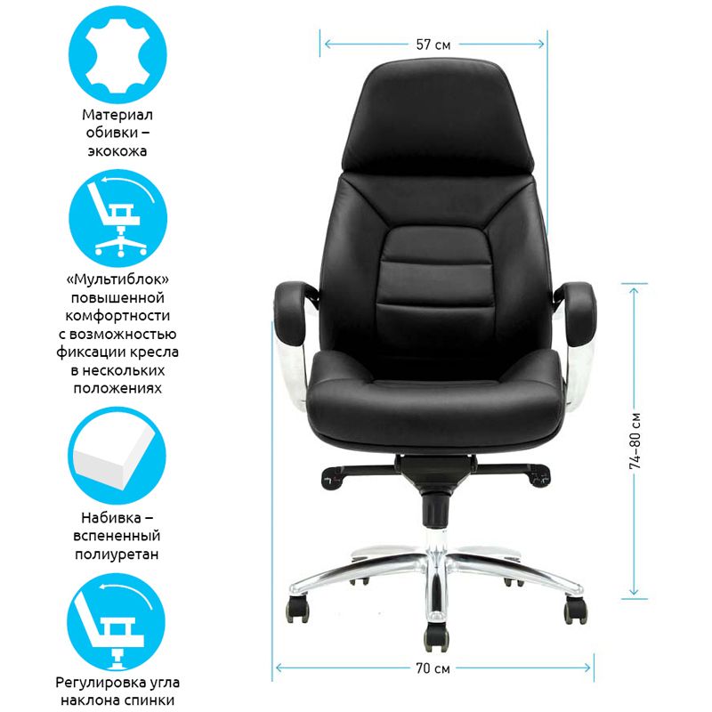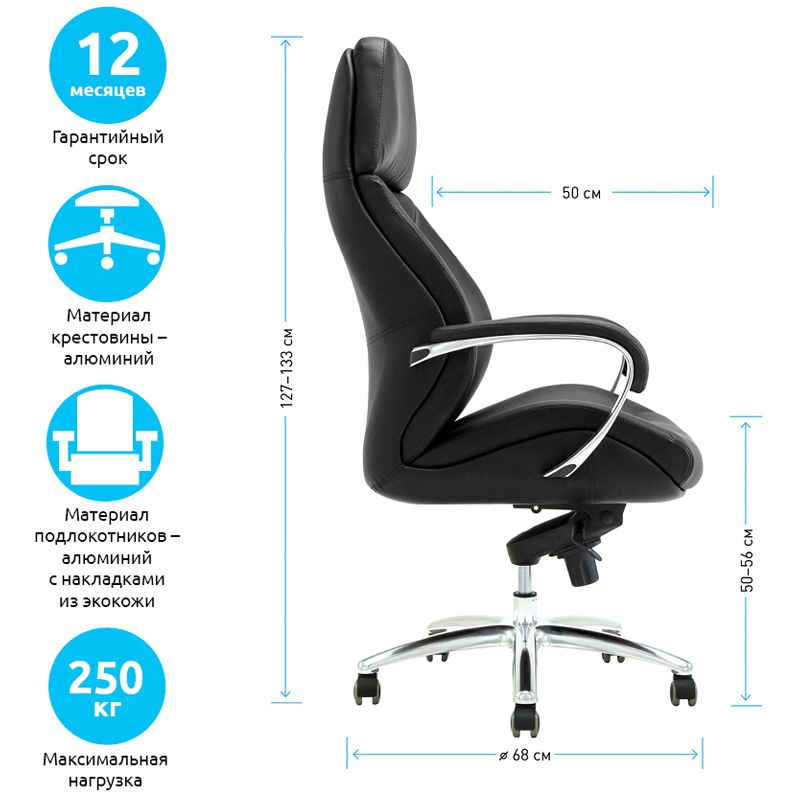 Кресло руководителя Helmi HL-ES08 "Monolith", повышенной прочности, экокожа черная, мультиблок, алюминий, до 250кг