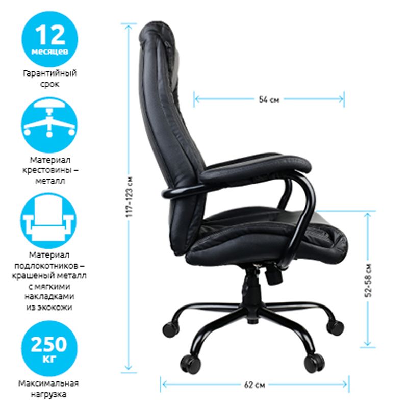 Кресло руководителя Helmi HL-ES10 "Stable", повышенной прочности, экокожа черная, до 250кг