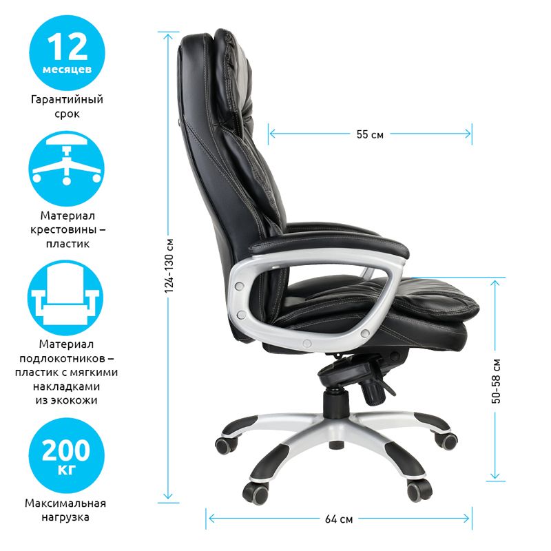 Кресло руководителя Helmi HL-ES12 "Senate", повышенной прочности, экокожа черная, мультиблок, до 200кг