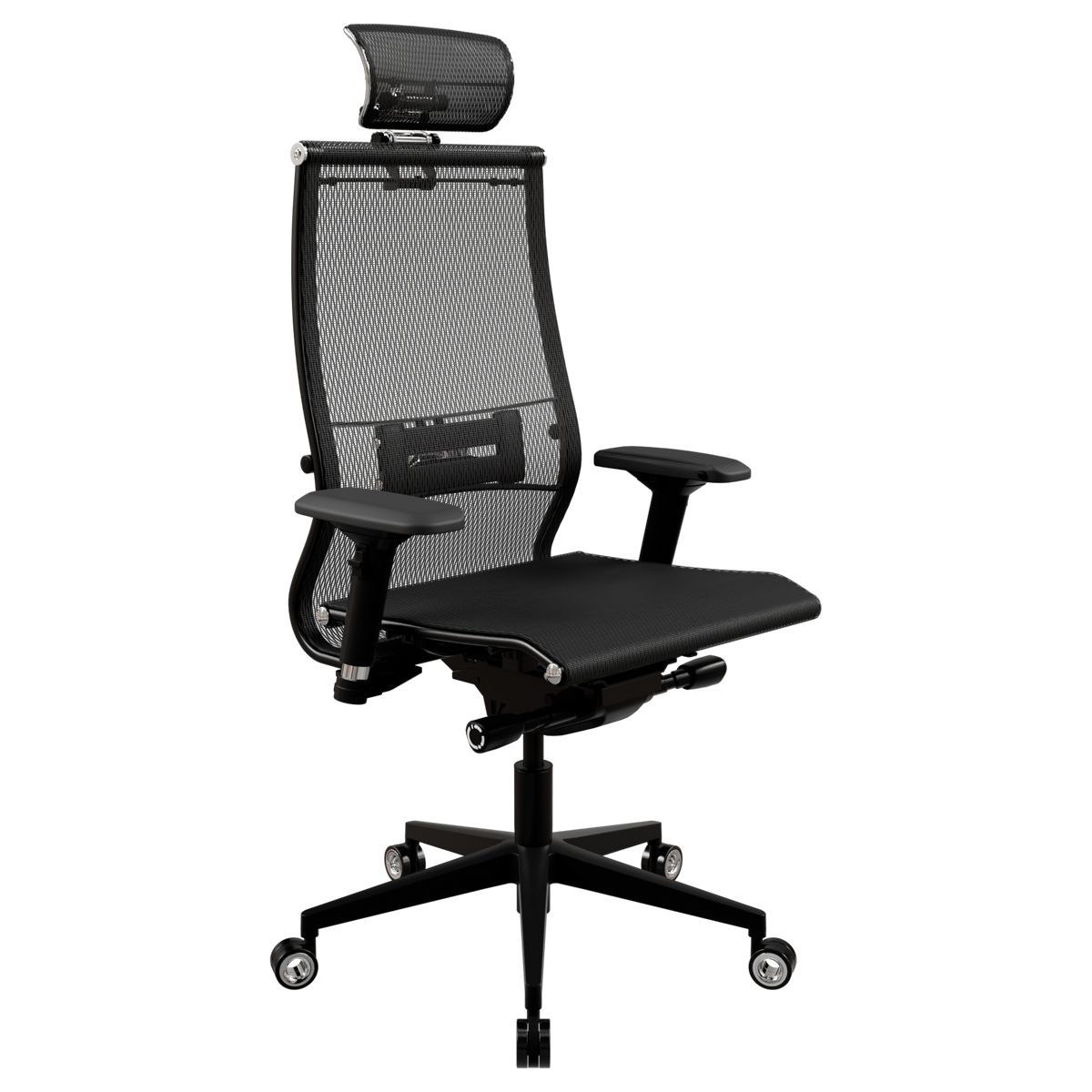 Кресло руководителя Метта "Samurai" Black Edition New, сетка черная, R-подголовник, синхромеханизм качания, мультиблок, 30.3.15.AA
