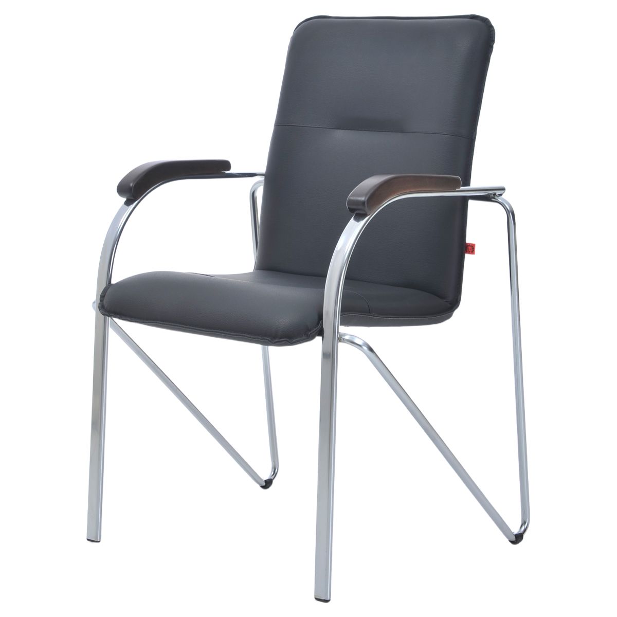 Стул Фабрикант "Самба" DO350/CH, Орех (1031), каркас металл хром, обивка кожзам черный BOX4