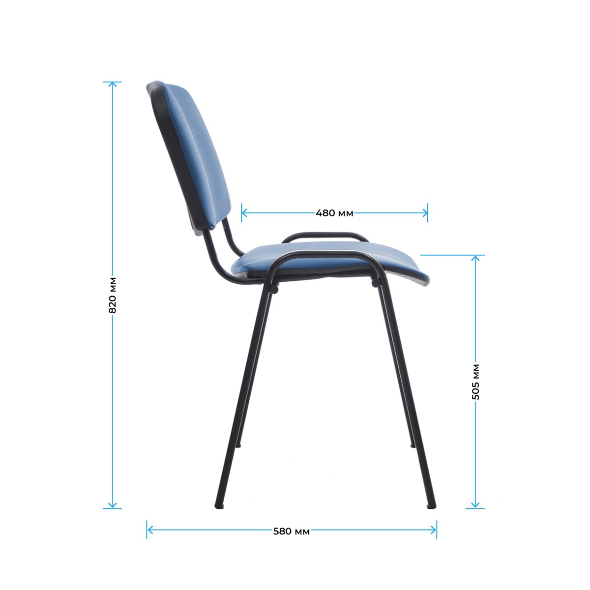 Набивка – высокоупругий поролон. Каркас – устойчивая металлическая конструкция. Ножки и дуги – плоскоовальная труба сечением 30х15 мм и толщиной стенок – 1,2 мм. Покрытие рамы – термореактивная порошковая краска чёрного цвета, стойкая к царапинам и сколам. На ножках есть пластиковые заглушки. Спинка сзади и сиденье снизу закрыты пластиковыми чехлами. Он подходит не только для офисных помещений, но и для заведений общественного питания, гостиниц, конференц-залов или как компьютерный стул для дома. Конструкция каркаса позволяет убирать стулья в стопки для экономии пространства.