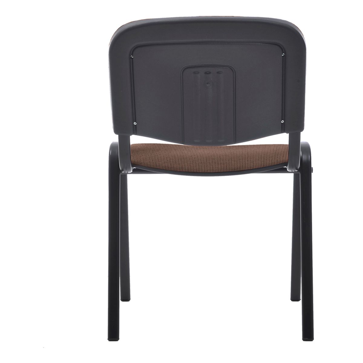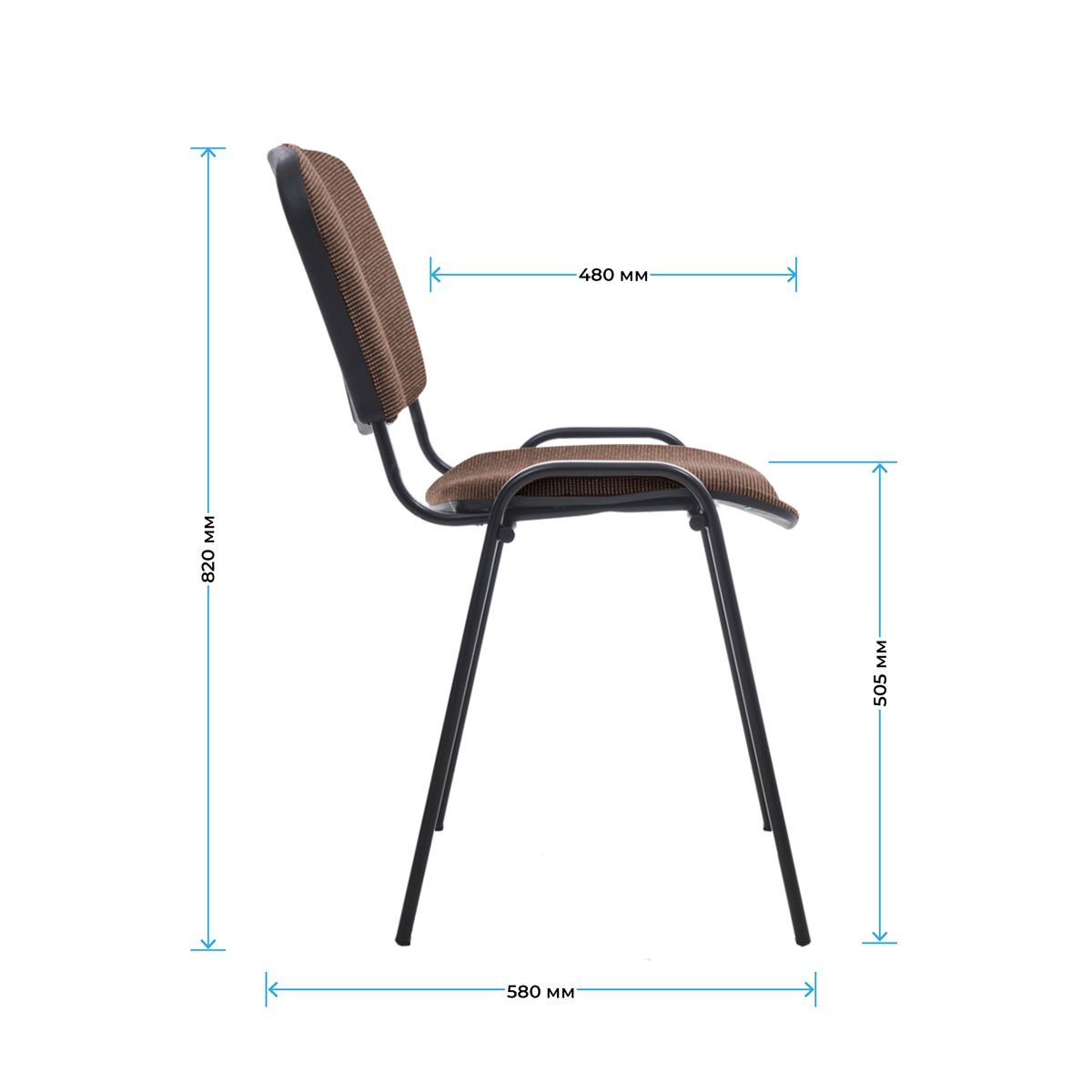 Набивка – высокоупругий поролон. Каркас – устойчивая металлическая конструкция. Ножки и дуги – плоскоовальная труба сечением 30х15 мм и толщиной стенок – 1,2 мм. Покрытие рамы – термореактивная порошковая краска чёрного цвета, стойкая к царапинам и сколам. На ножках есть пластиковые заглушки. Спинка сзади и сиденье снизу закрыты пластиковыми чехлами. Он подходит не только для офисных помещений, но и для заведений общественного питания, гостиниц, конференц-залов или как компьютерный стул для дома. Конструкция каркаса позволяет убирать стулья в стопки для экономии пространства.