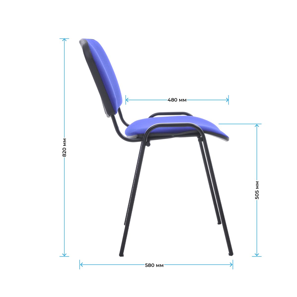 Набивка – высокоупругий поролон. Каркас – устойчивая металлическая конструкция. Ножки и дуги – плоскоовальная труба сечением 30х15 мм и толщиной стенок – 1,2 мм. Покрытие рамы – термореактивная порошковая краска чёрного цвета, стойкая к царапинам и сколам. На ножках есть пластиковые заглушки. Спинка сзади и сиденье снизу закрыты пластиковыми чехлами. Он подходит не только для офисных помещений, но и для заведений общественного питания, гостиниц, конференц-залов или как компьютерный стул для дома. Конструкция каркаса позволяет убирать стулья в стопки для экономии пространства.
