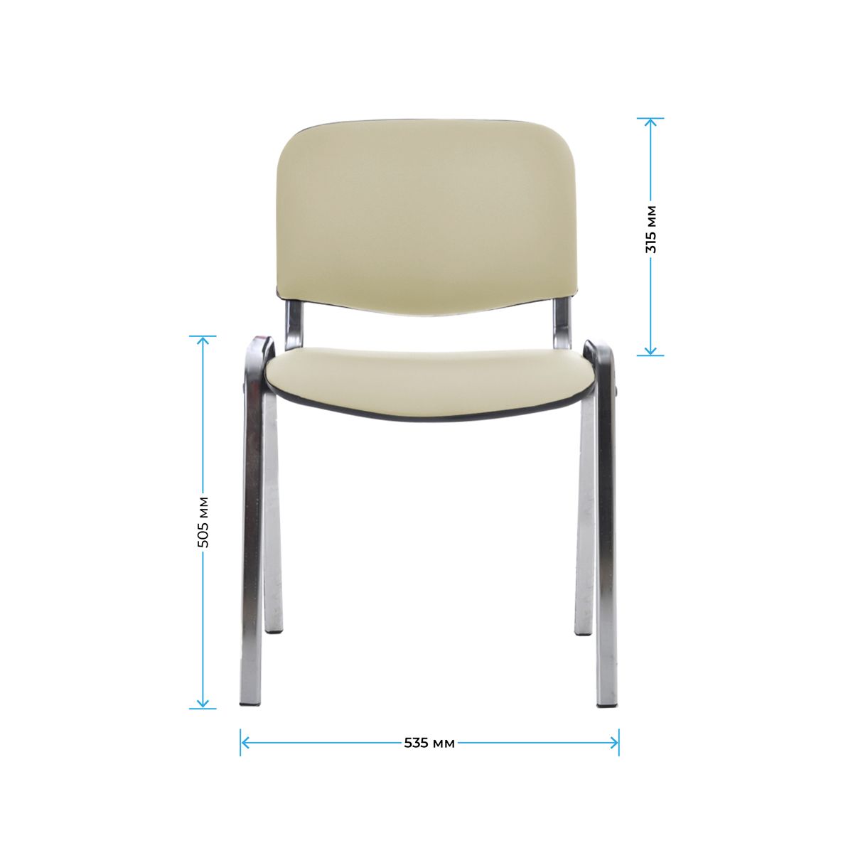 Набивка – высокоупругий поролон. Каркас – устойчивая металлическая конструкция. Ножки и дуги – плоскоовальная труба сечением 30х15 мм и толщиной стенок – 1,2 мм. Покрытие рамы – хром и обладает высокой твердостью и износостойкостью, защищает поверхность металла от коррозии, что способствует увеличению срока службы в несколько раз. На ножках есть пластиковые заглушки. Спинка сзади и сиденье снизу закрыты пластиковыми чехлами. Он подходит не только для офисных помещений, но и для заведений общественного питания, гостиниц, конференц-залов или как компьютерный стул для дома. Конструкция каркаса позволяет убирать стулья в стопки для экономии пространства.