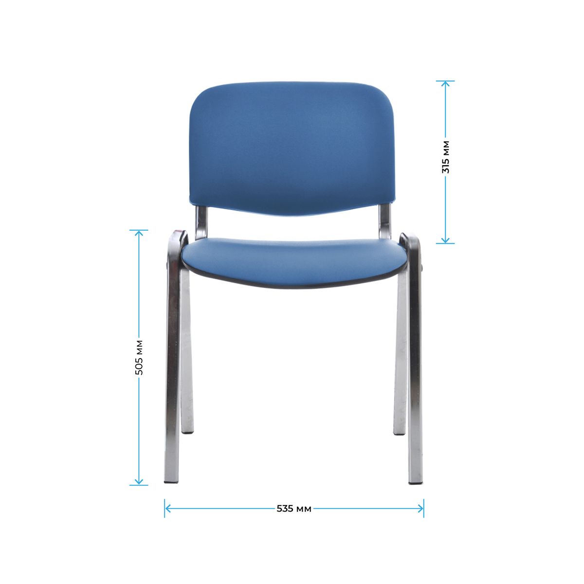 Набивка – высокоупругий поролон. Каркас – устойчивая металлическая конструкция. Ножки и дуги – плоскоовальная труба сечением 30х15 мм и толщиной стенок – 1,2 мм. Покрытие рамы – хром и обладает высокой твердостью и износостойкостью, защищает поверхность металла от коррозии, что способствует увеличению срока службы в несколько раз. На ножках есть пластиковые заглушки. Спинка сзади и сиденье снизу закрыты пластиковыми чехлами. Он подходит не только для офисных помещений, но и для заведений общественного питания, гостиниц, конференц-залов или как компьютерный стул для дома. Конструкция каркаса позволяет убирать стулья в стопки для экономии пространства.