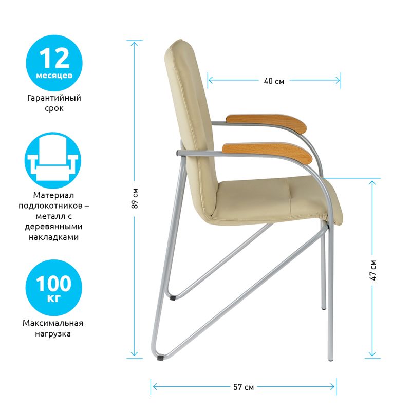Стул Helmi HL-F03 "Самба", каркас металл алюм., экокожа, бежевый, бук BOX1