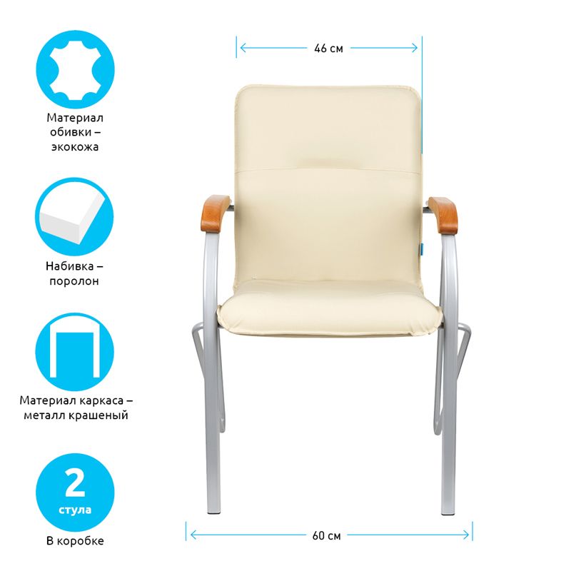 Универсальность модели стула для посетителей Helmi HL-F03 «Самба» в ее безупречной сочетаемости с самыми различными интерьерными решениями. Мягкое основание стула с монолитным фанерным каркасом на крашеной металлической раме обеспечивает комфорт посетителям и сотрудникам. Модель выполнена из экокожи бежевого цвета. Набивка – высокоупругий эластичный поролон. Подлокотники с деревянными накладками классического цвета «бук» добавляют особого лоска офисному стулу. Поставляются по 2 штуки в коробке.