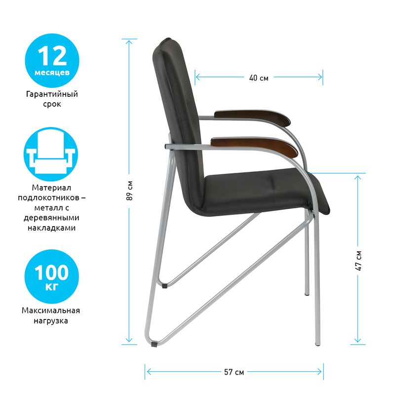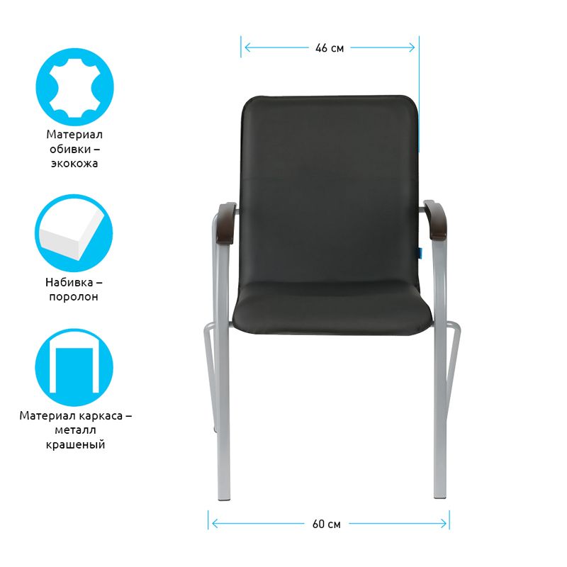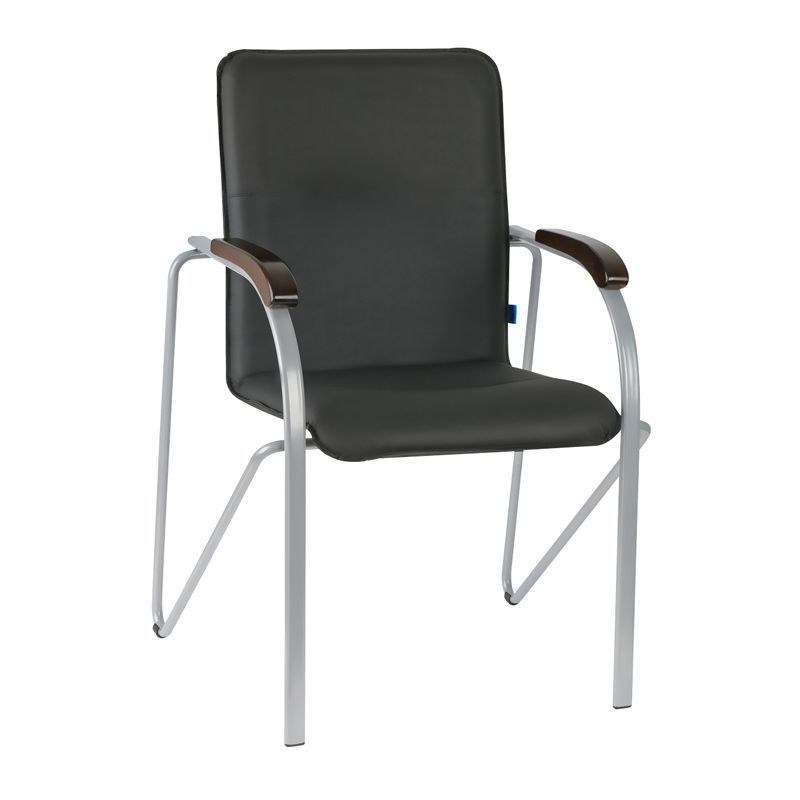 Стул Helmi HL-F03 "Самба", каркас металл алюм., экокожа, черный, орех BOX1