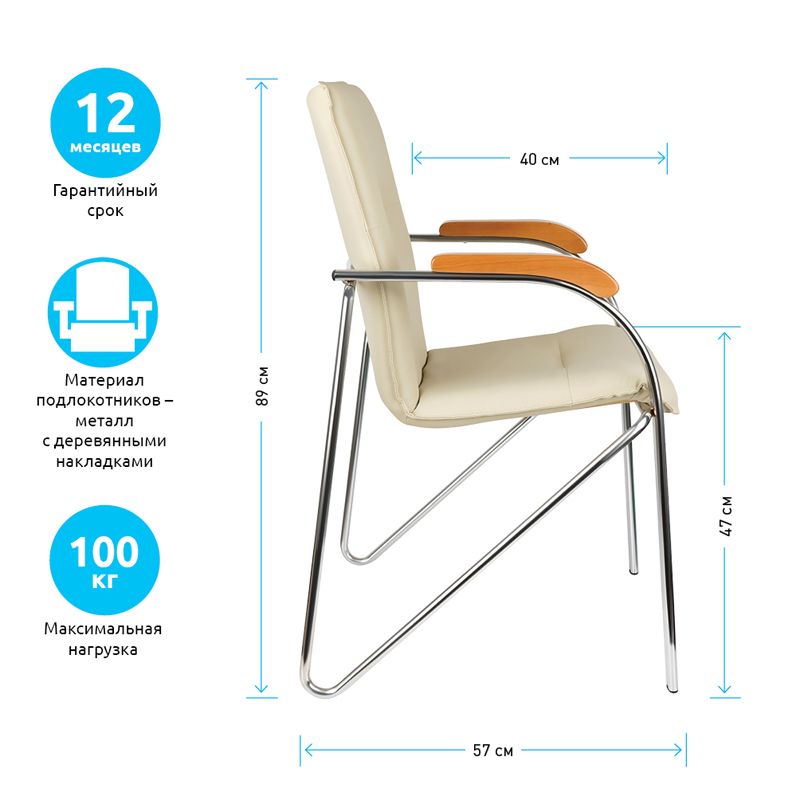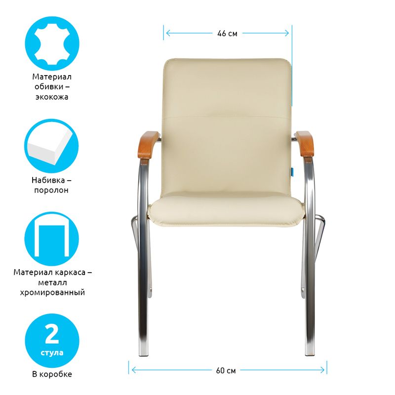 Стул Helmi HL-F03 "Самба", каркас металл хром, экокожа, бежевый, бук BOX2