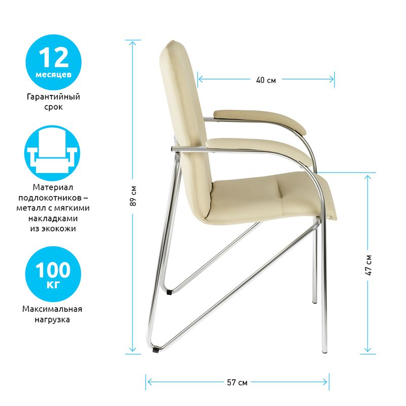 Стул Helmi HL-F04 "Самба М", каркас металл хром, экокожа, бежевый BOX2