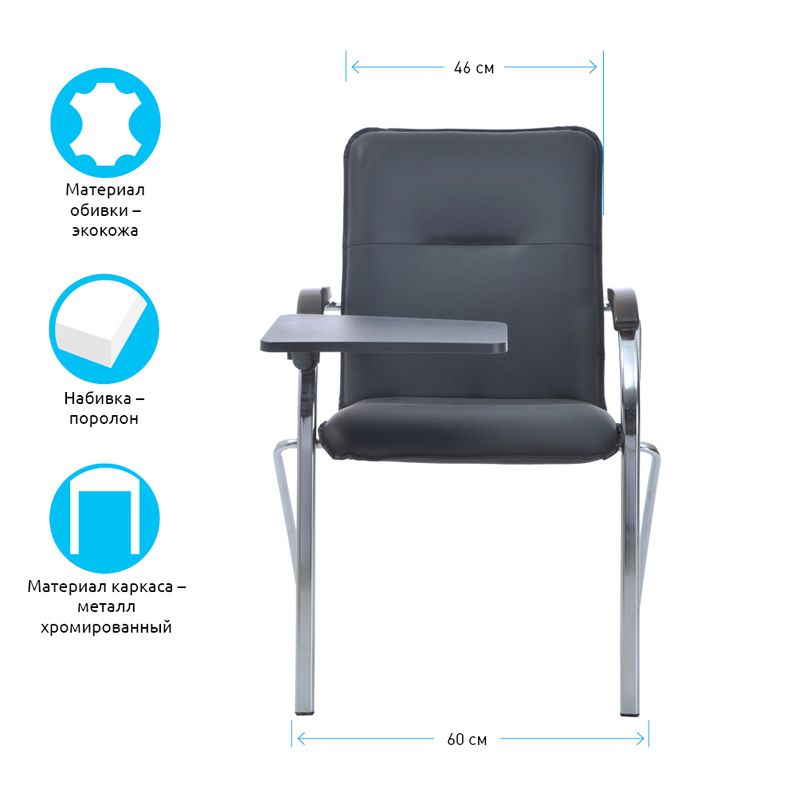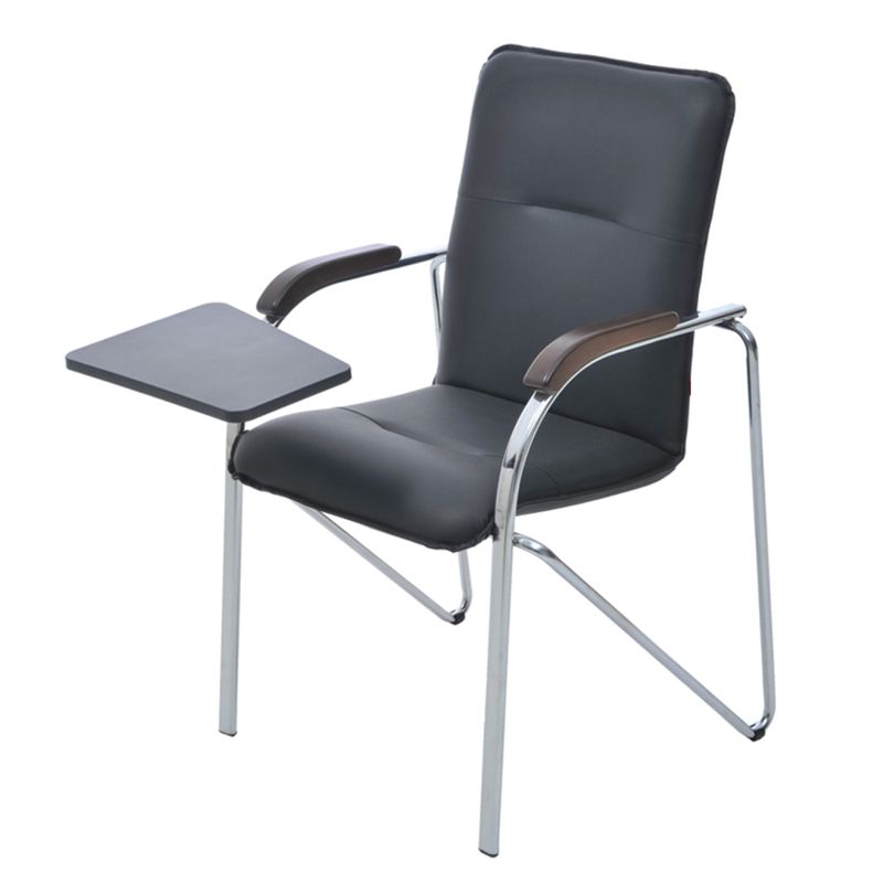 Стул Helmi HL-F05 "Самба СТ" со столиком, каркас металл хром, экокожа, черный, орех BOX1