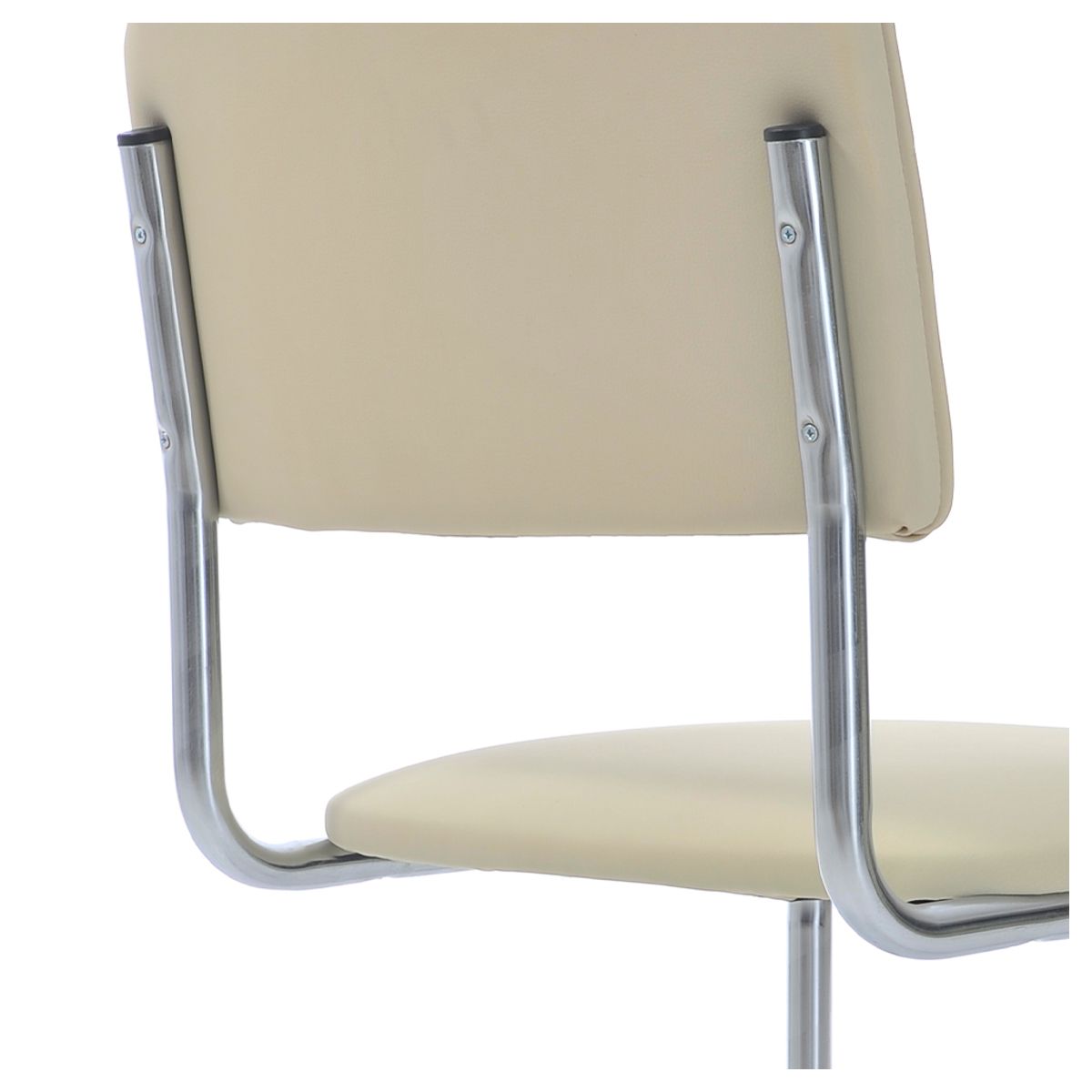 Цвет обивки из экокожи – бежевый. Выполнен на хромированном
