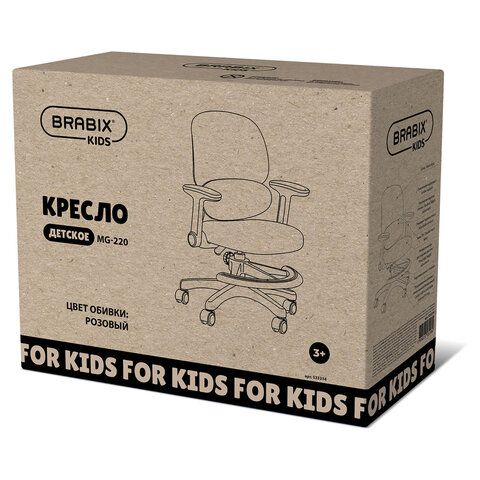 Кресло детское с подставкой для ног BRABIX KIDS MG-220, сетка/ткань TW, розовое, 533314