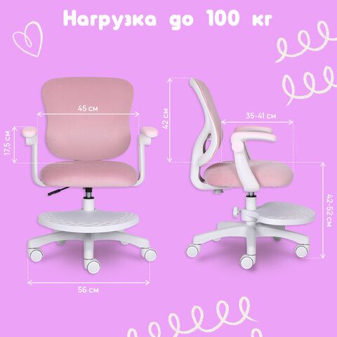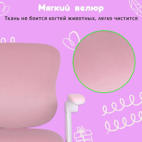 Кресло детское с подставкой для ног BRABIX "Sky MG-206", велюр, розовое, 533154