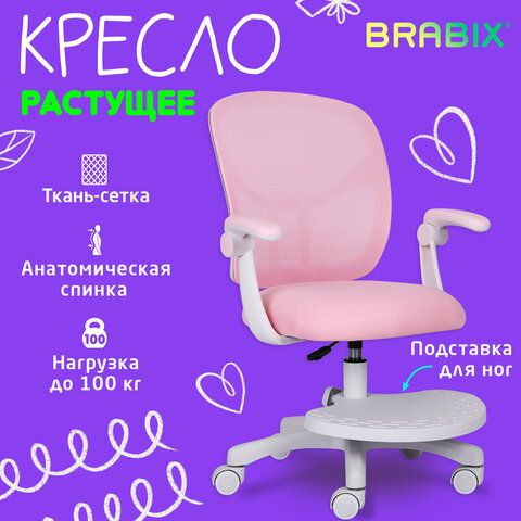 Кресло детское с подставкой для ног BRABIX "Toy MG-205", сетка/ткань TW, розовое, 533151