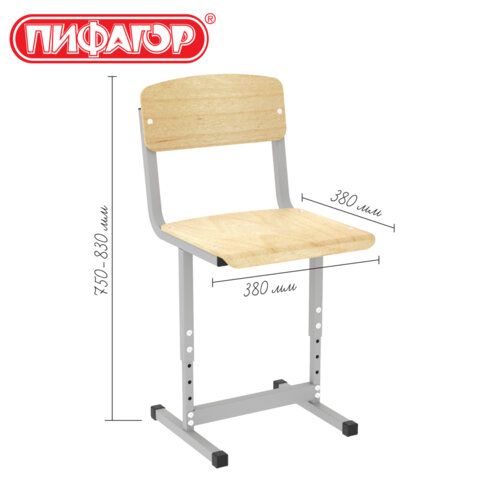 Стул ученический регулируемый ПИФАГОР SC-3, 380х380х750-830 мм, рост 5-7 / 4-6 (160-190 см), серый каркас, фанера, 533350