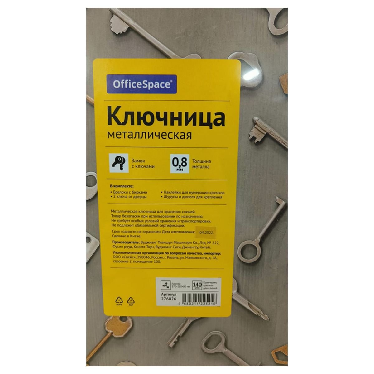 Ключница из прочной стали толщиной 0,8 мм. В комплект входит: