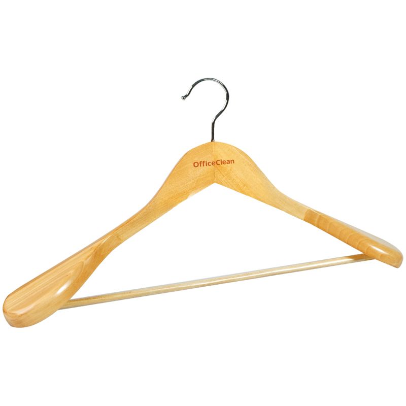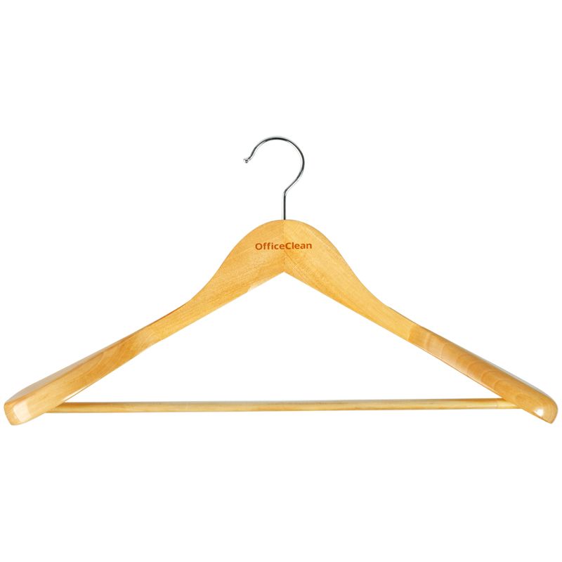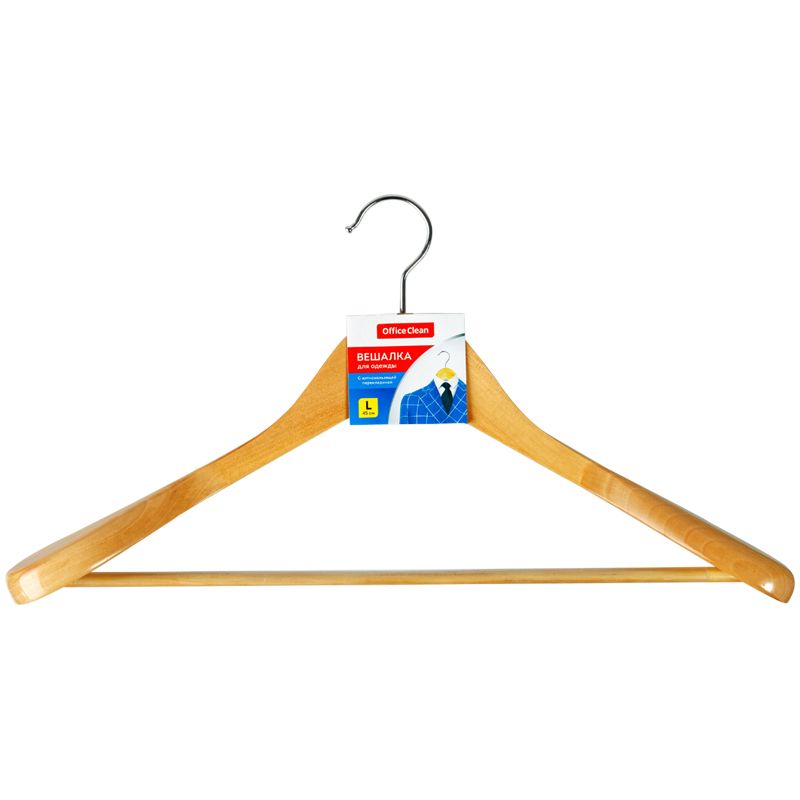 Вешалка-плечики OfficeClean, деревянная, анатомическая, антискользящая перекладина, 45см, цвет сосна
