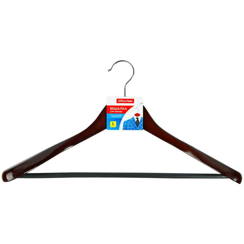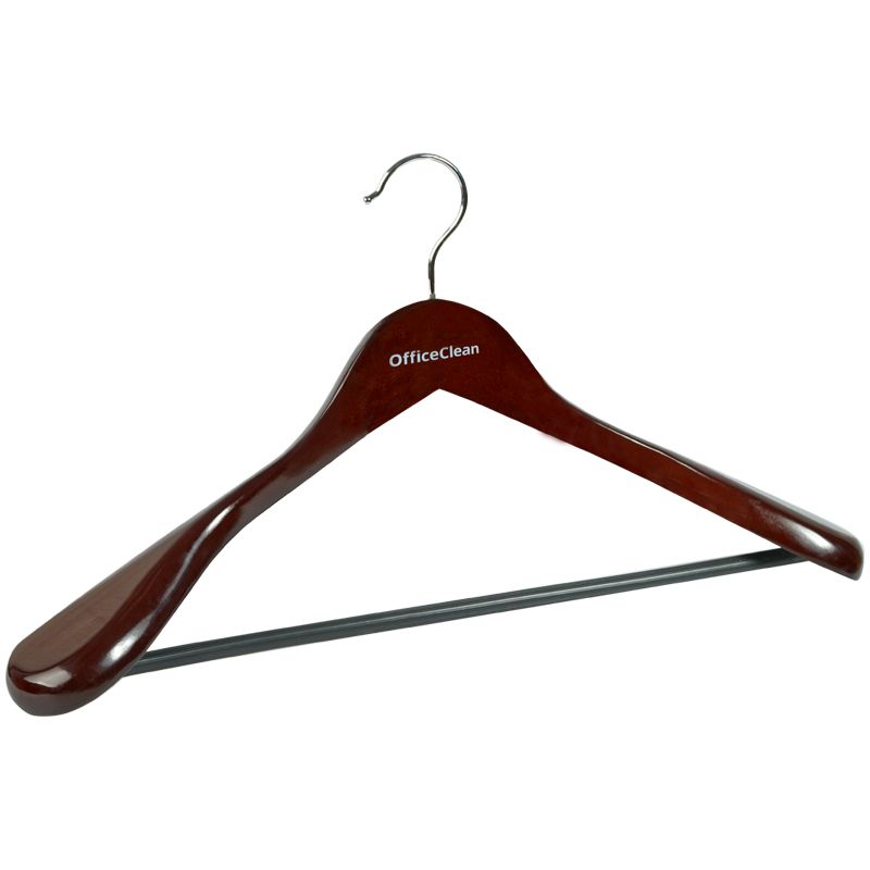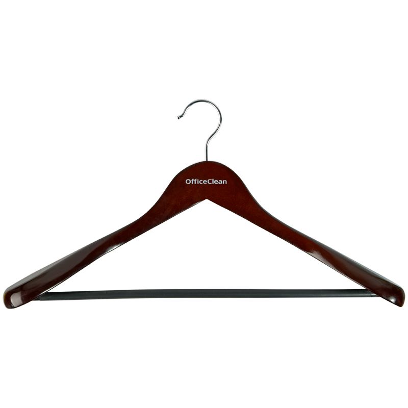 Вешалка-плечики OfficeClean, деревянная, анатомическая, антискользящаяя перекладина, 45см, цвет вишня