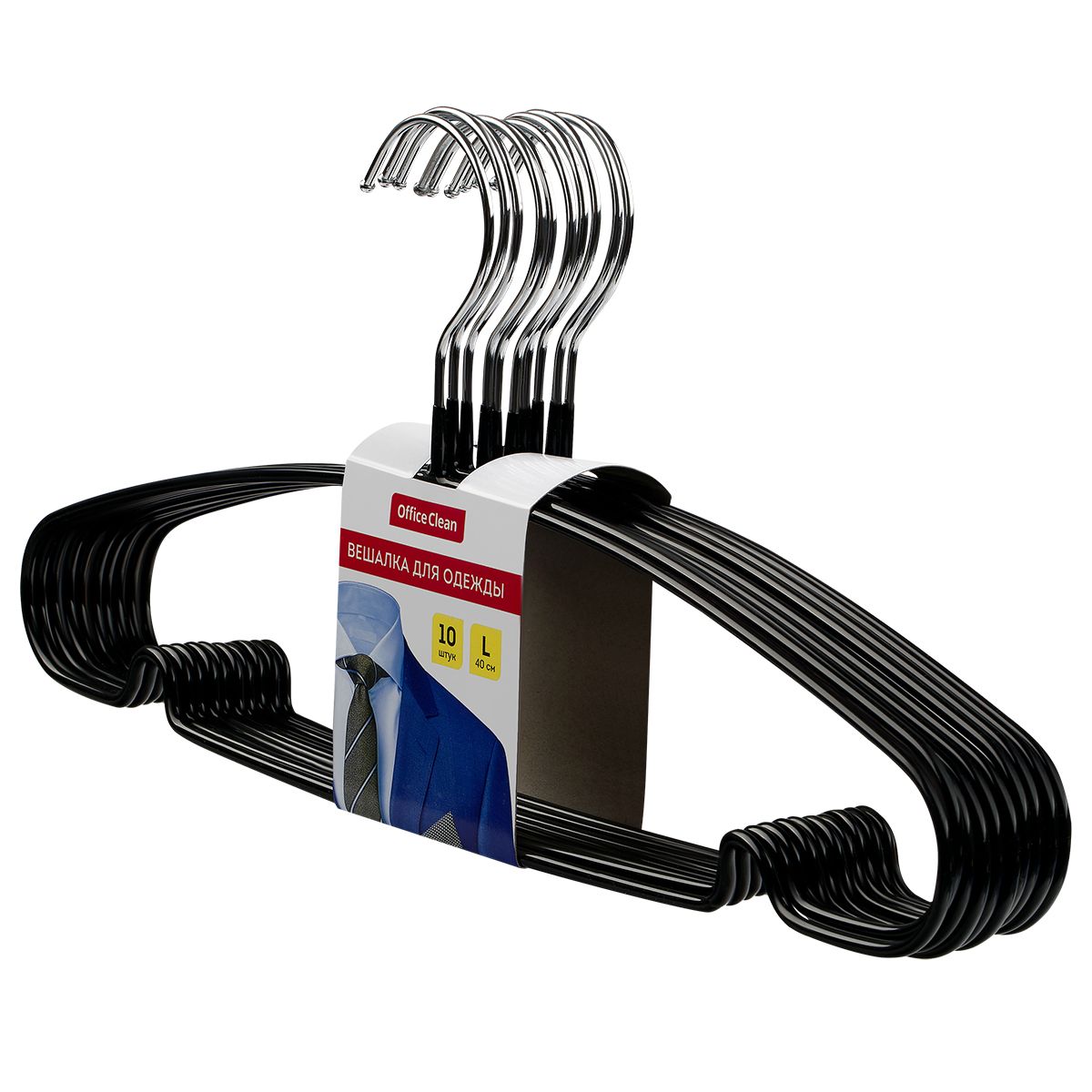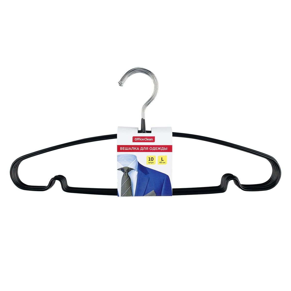 Вешалка-плечики OfficeClean, набор 10шт., металл/ПВХ, размер 48-50, цвет черный
