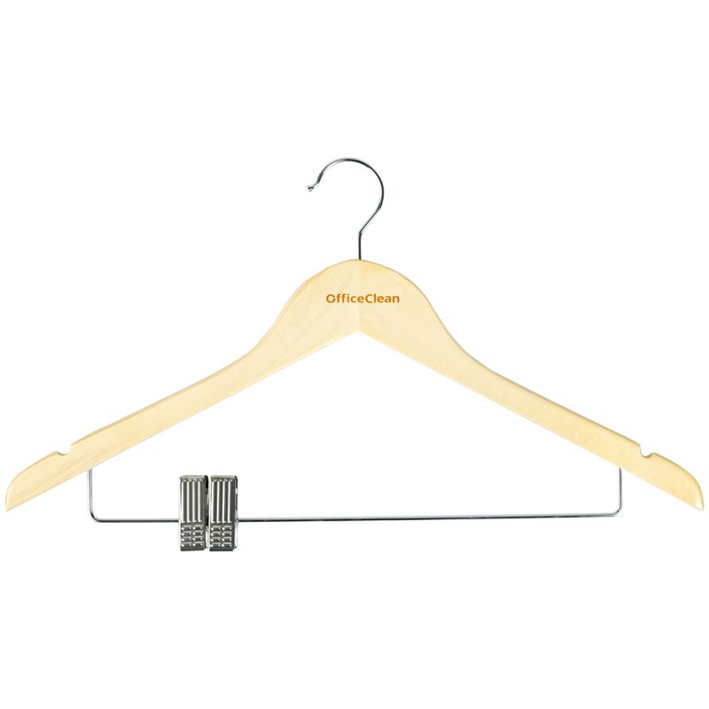 Вешалка-плечики OfficeClean, набор 3шт., деревянная, металлическая перекладина, клипсы для брюк, 45см, цвет сосна