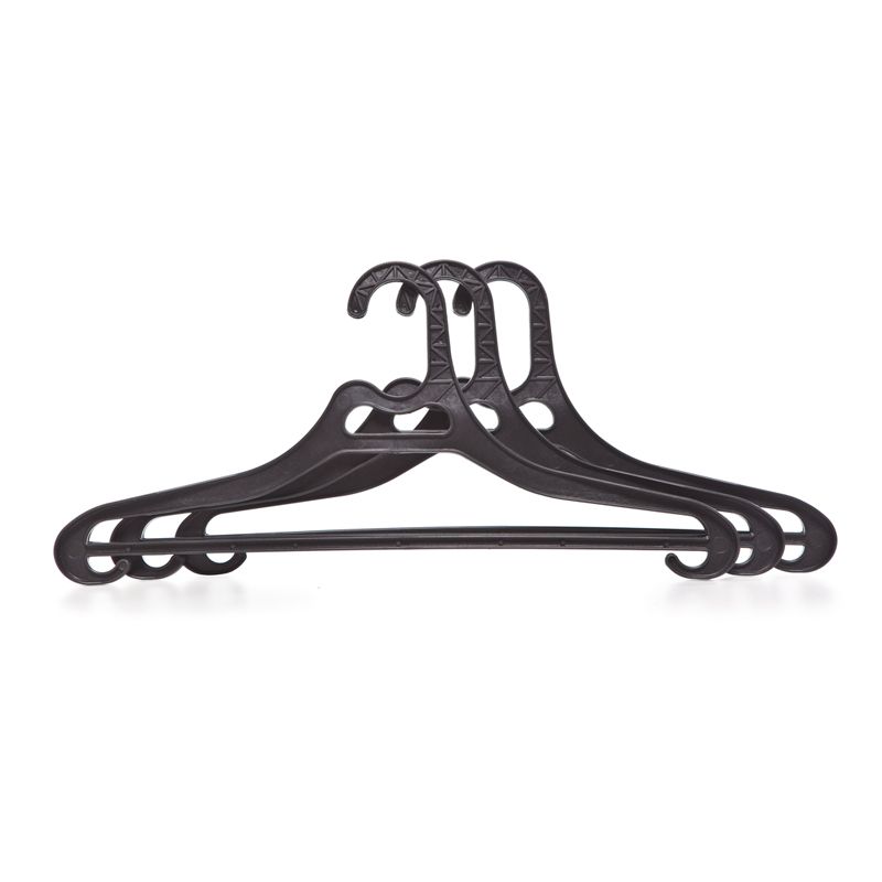 Вешалка-плечики OfficeClean, набор 3шт., пластик, плоская, перекладина, крючки, 44см (р.48-52),черный