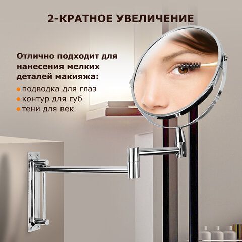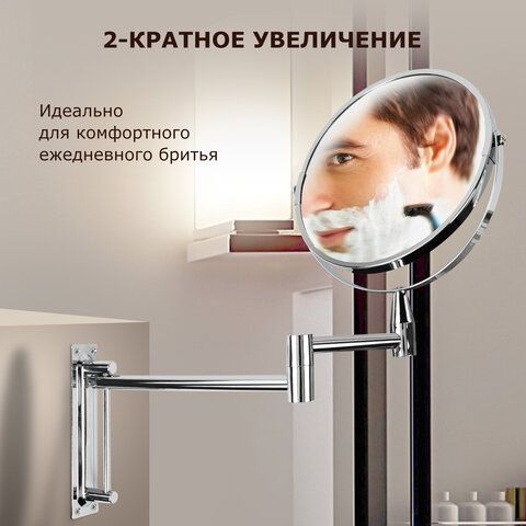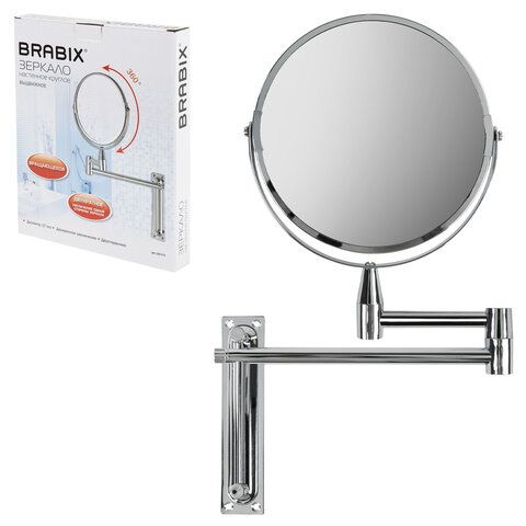Зеркало настенное BRABIX, диаметр 17 см, двусторонее, с увеличением, нержавеющая сталь, выдвижное (петли), 607419