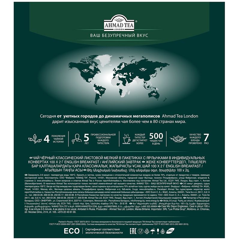 Чай Ahmad Tea "Английский завтрак", черный, 100 фольг. пакетиков по 2г