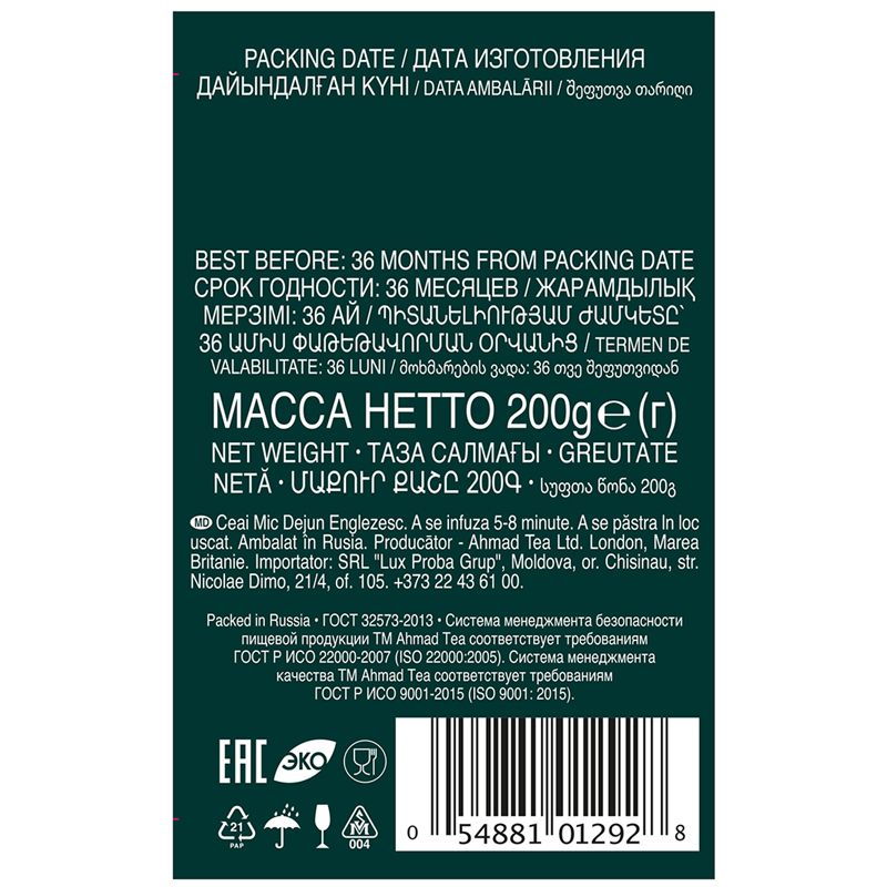 Чай Ahmad Tea "Английский завтрак", черный, листовой, 200г