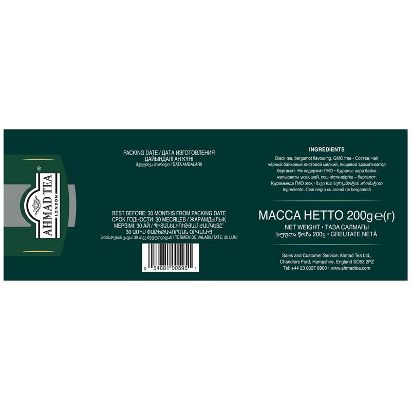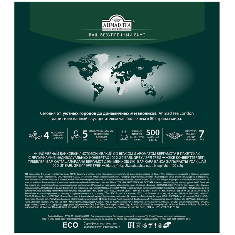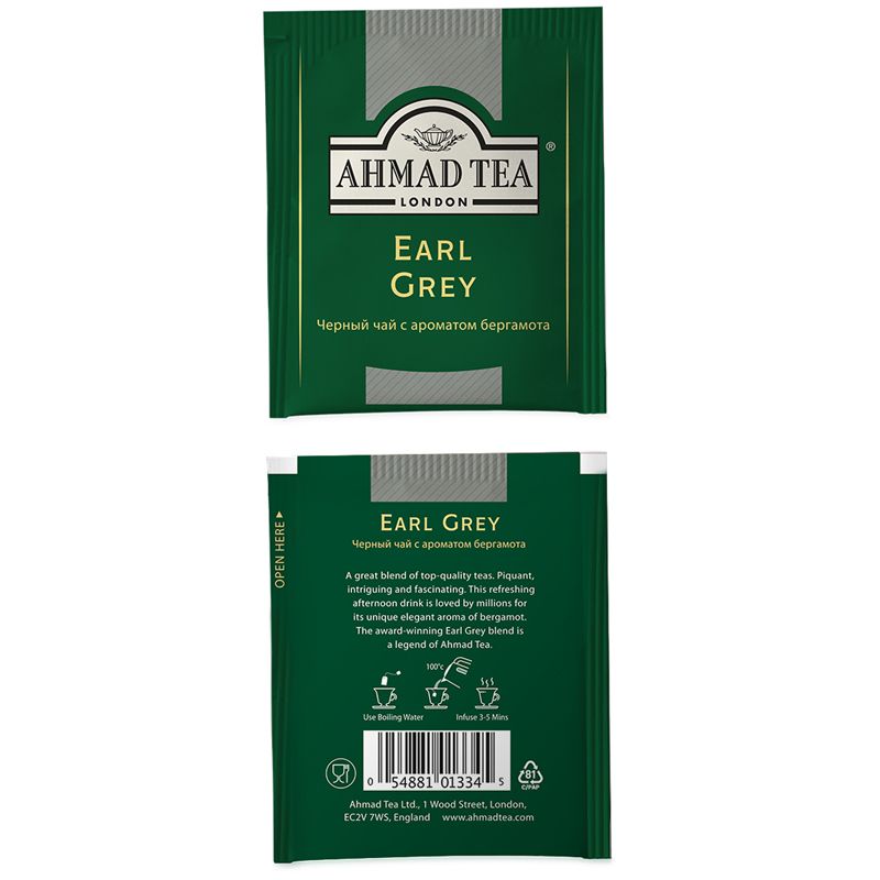 Чай Ahmad Tea "Earl Gray", черный с бергамотом, 100 фольг. пакетиков по 2г