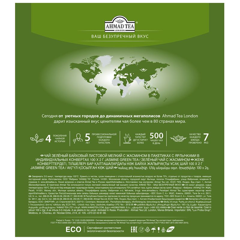 Чай Ahmad Tea "Jasmine Green Tea", зеленый с жасмином, 100 фольг. пакетиков по 2г