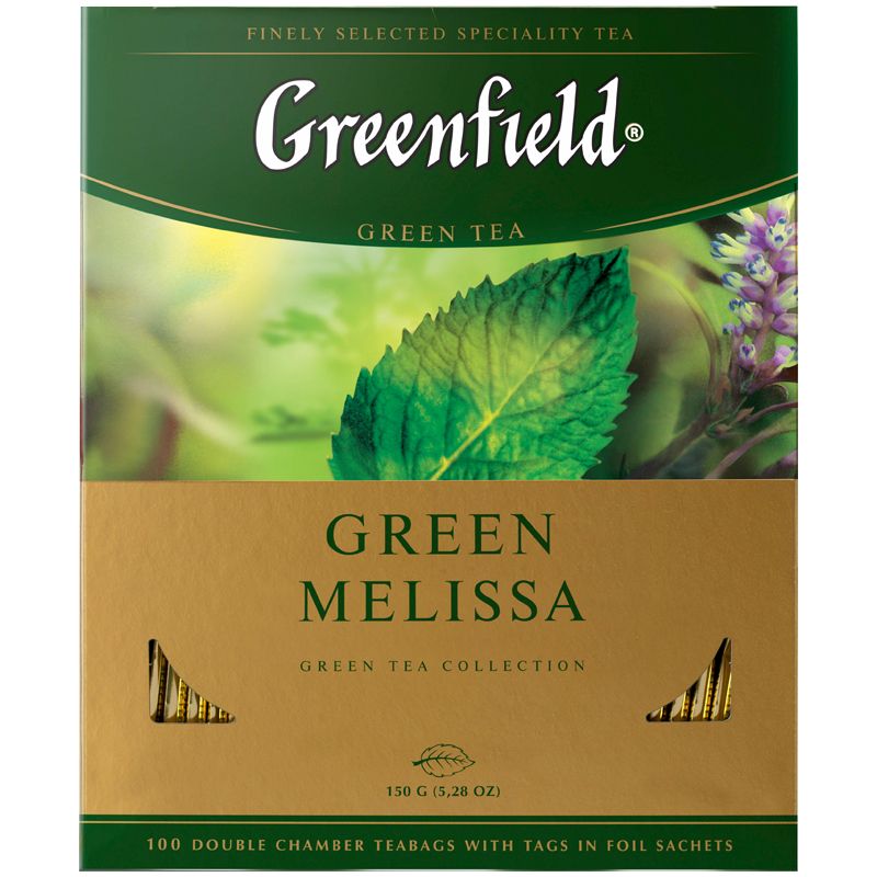 Чай Greenfield "Green Melissa", зеленый, 100 фольг. пакетиков по 1,5г.