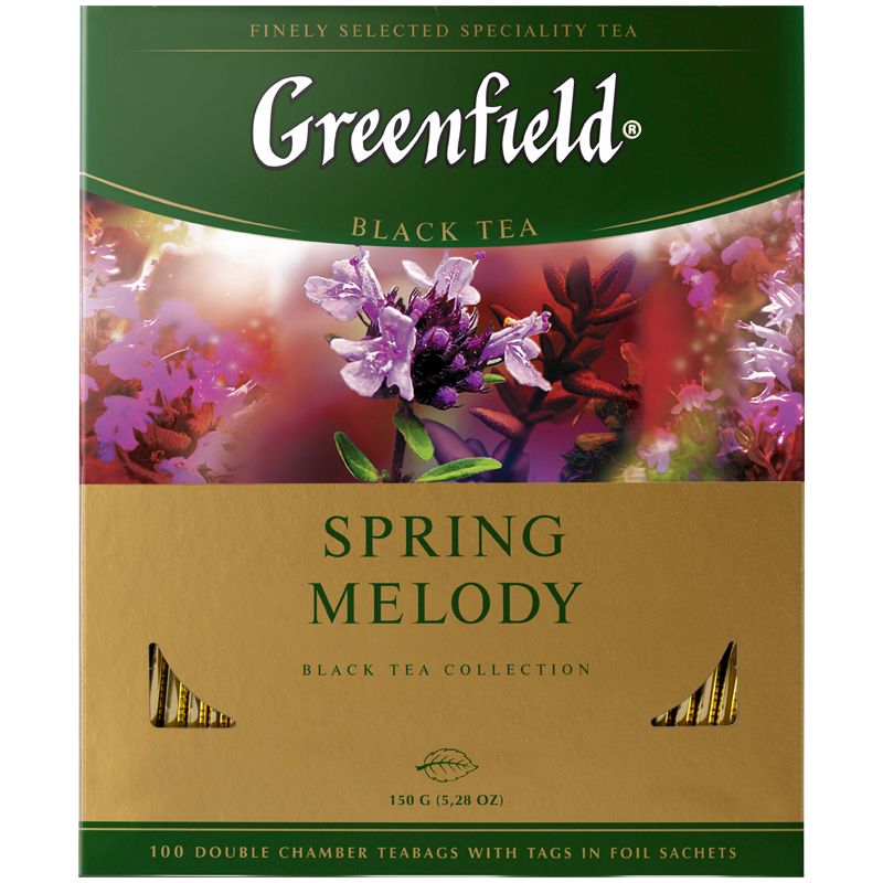 Чай Greenfield "Spring Melody", черный, с ароматом мяты, чабреца, 100 фольг. пакетиков по 1,5г