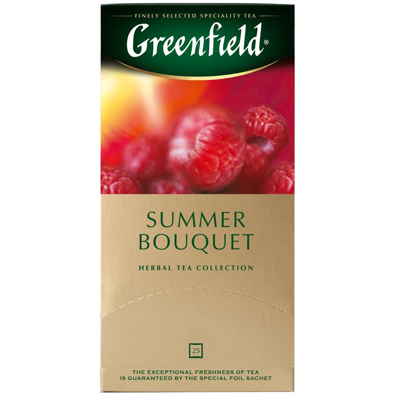 Чай Greenfield "Summer Bouquet", травяной аром. малина,шиповн., 25 фольг. пакетиков по 1,5г