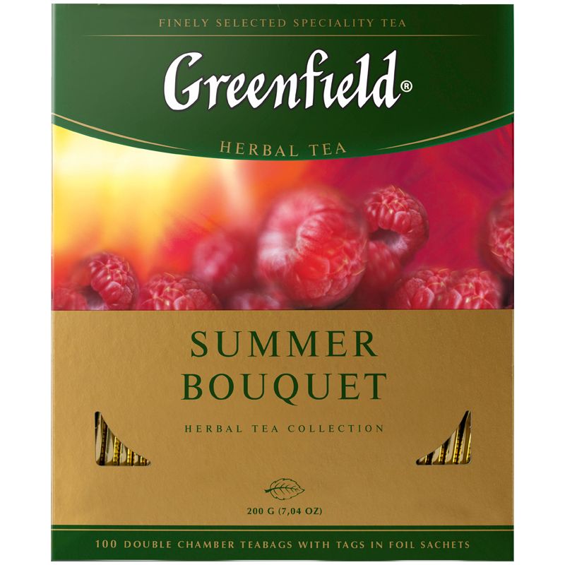 Чай Greenfield "Summer Bouquet", травяной аром. малина, шиповник, яблоко, 100 пакетиков по 2г