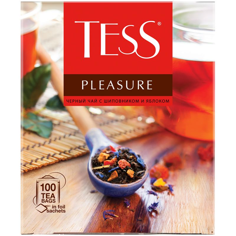 Чай Tess "Pleasure", черный, тропич. фрукты, лепестки цветов, шиповник, яблоко, 100 фольг. пакетиков по 1,5г