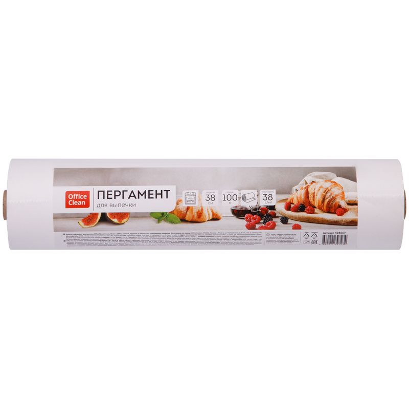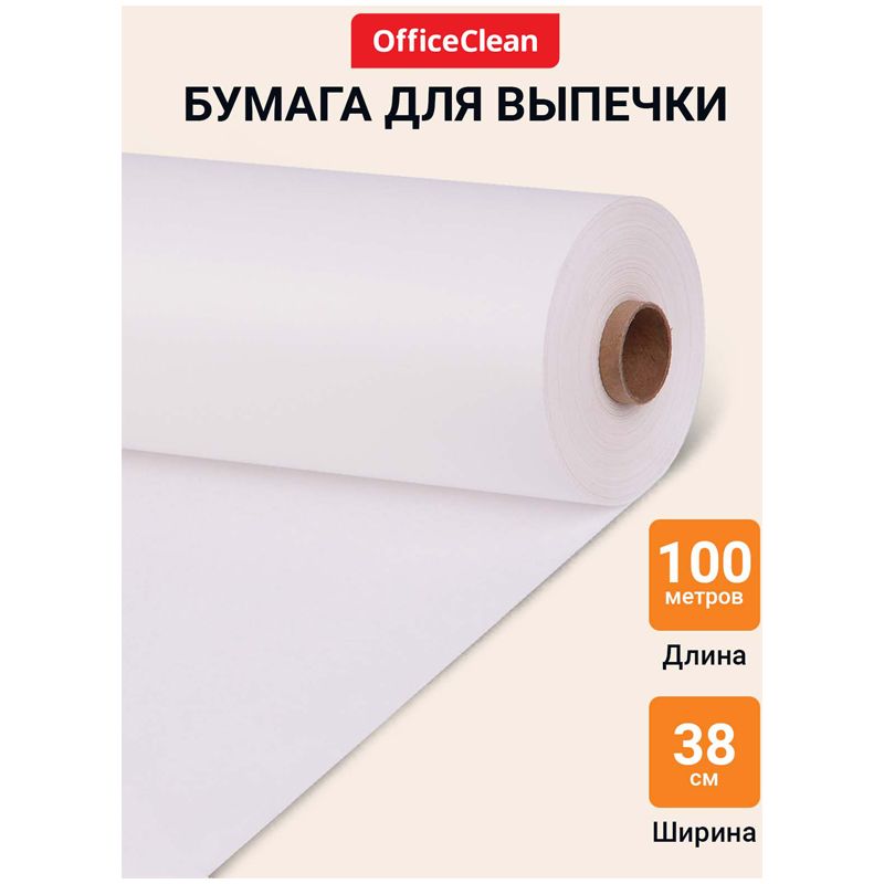 Бумага (пергамент) для выпечки OfficeClean, белая, 38см*100м, 38г/м2, в рулоне, в пленке, без силиконового покрытия