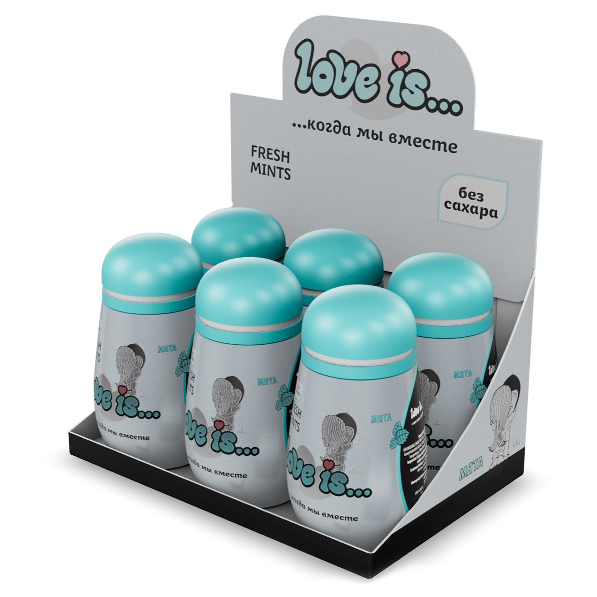 Освежающее драже Love is... со вкусом мяты, в пластиковой упаковке 45г