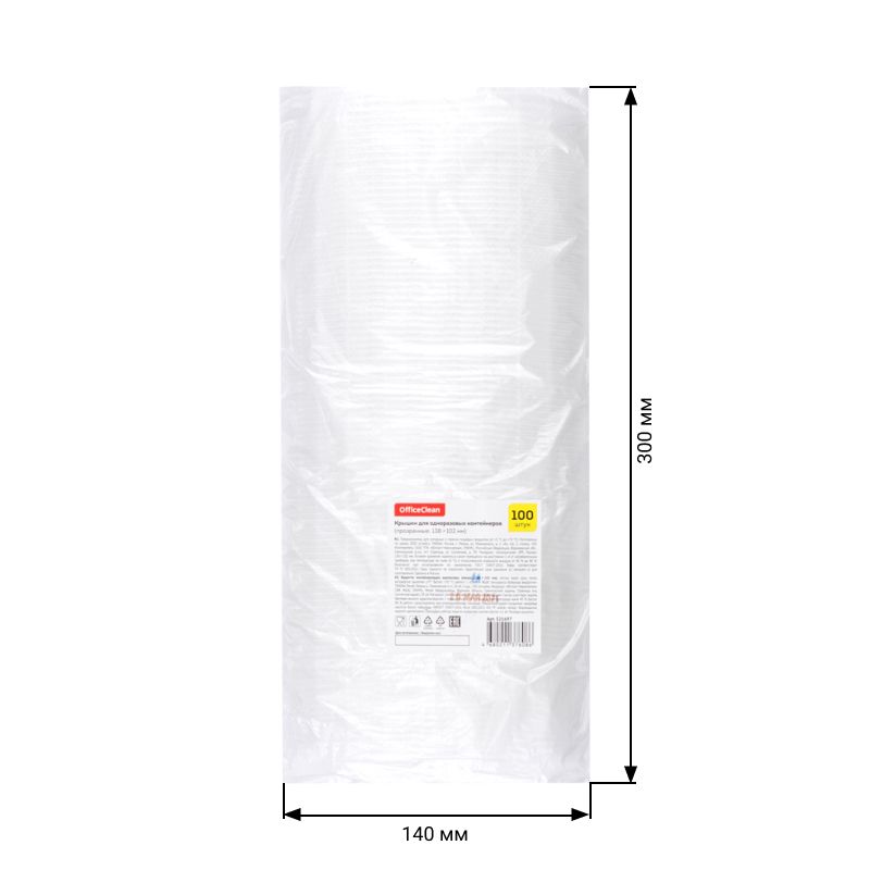 Крышки для одноразовых контейнеров OfficeClean 138*102*5мм, набор 100шт., ПП, прозрачные