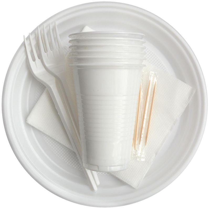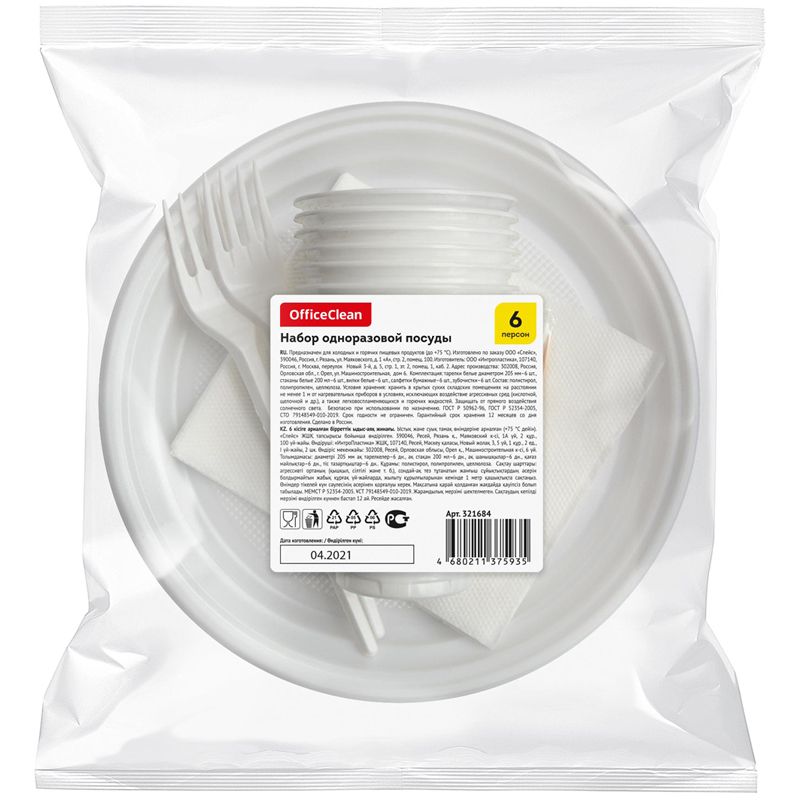 Набор одноразовой посуды OfficeClean на 6 персон (вилки, стаканы, тарелки, салфетки) (ПОД ЗАКАЗ)