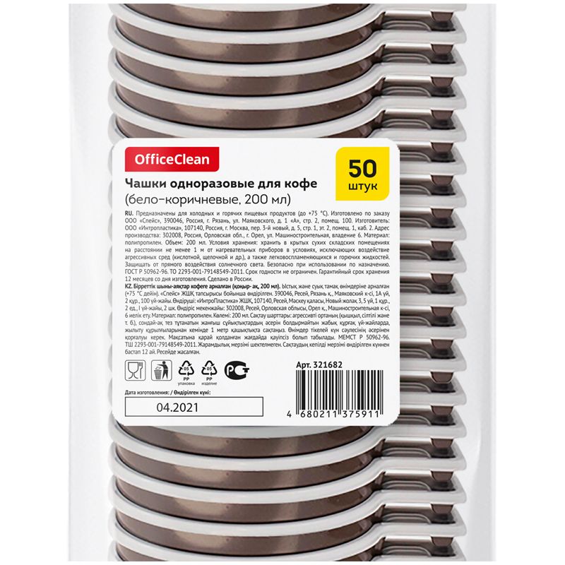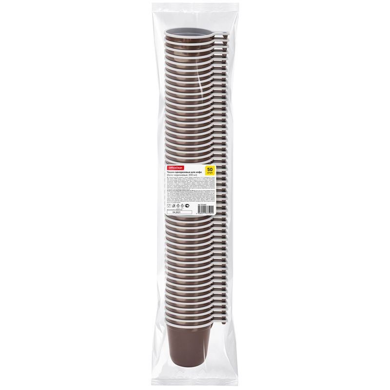 Чашки одноразовые для кофе OfficeClean 200мл, набор 50шт., премиум, ПП, бело-коричневые, хол/гор