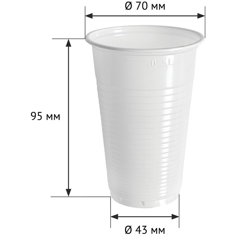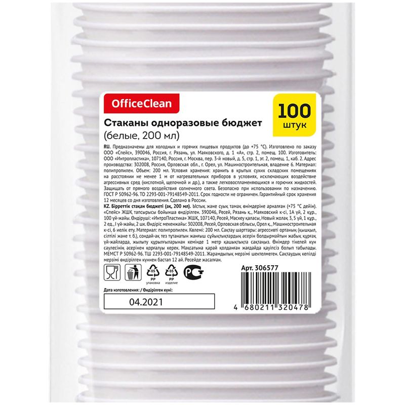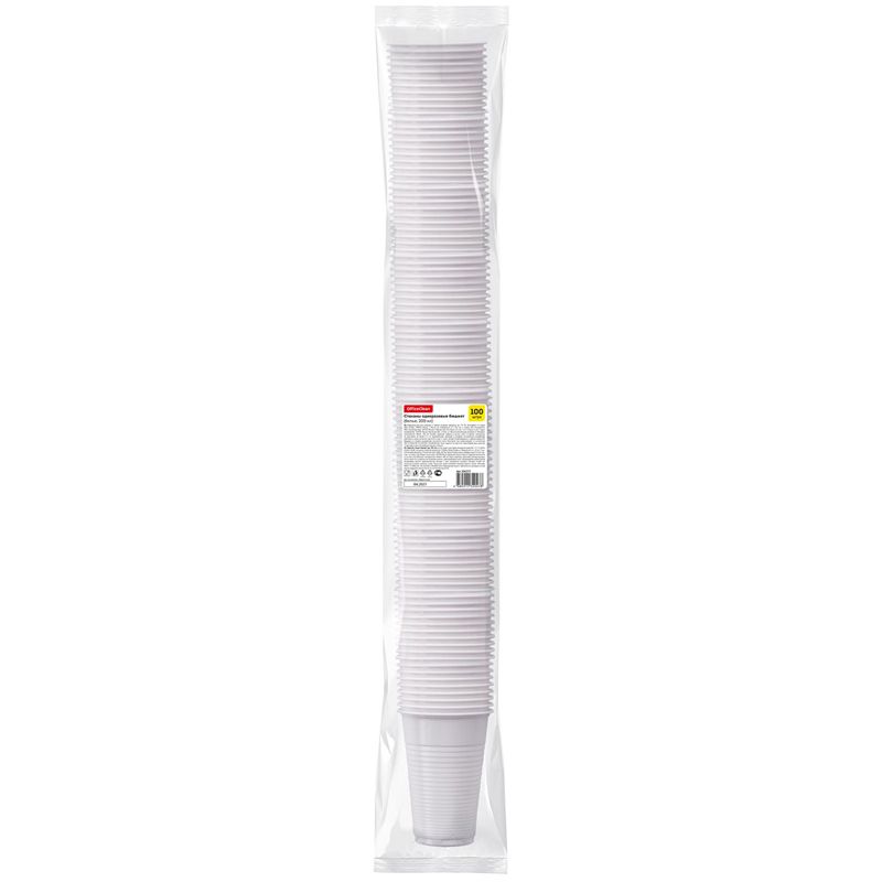 Стаканы одноразовые OfficeClean 200мл, набор 100шт., бюджет, ПП, белые, хол/гор