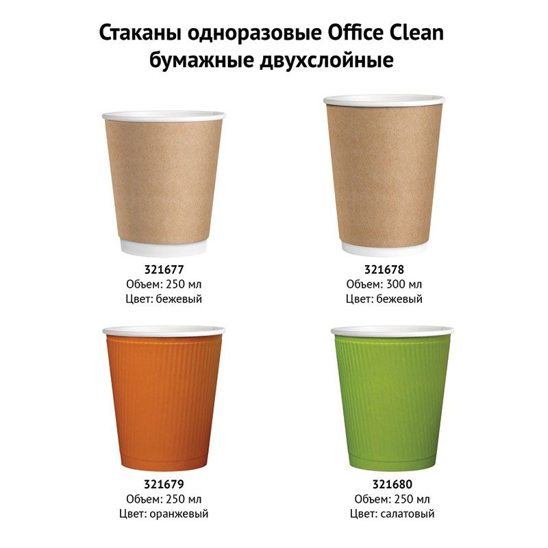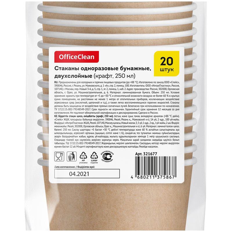 Стаканы одноразовые OfficeClean 250мл, набор 20шт., бумажные двухслойные, крафт, хол/гор