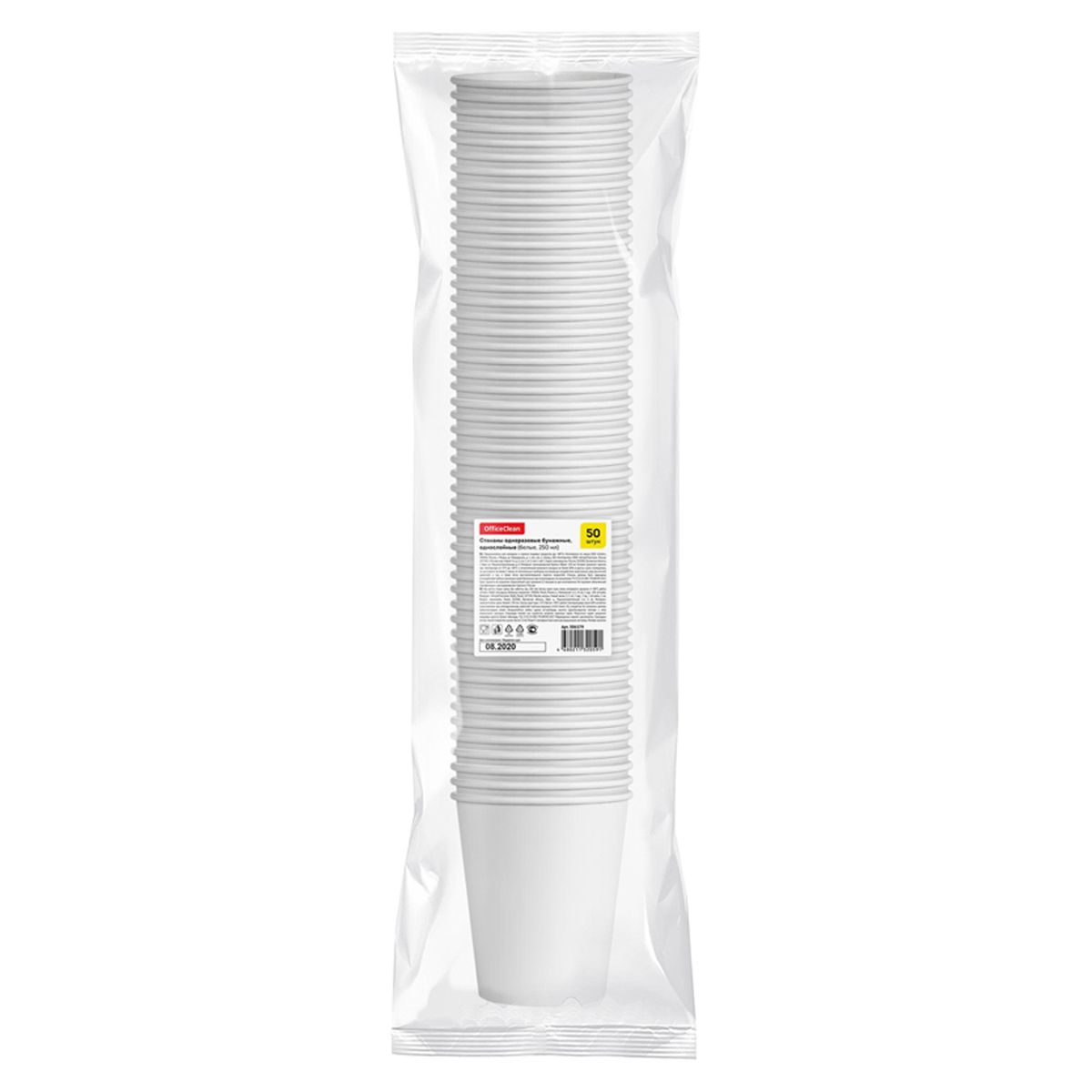 Стаканы одноразовые OfficeClean 250мл, набор 50шт., бумажные однослойные, белые, хол/гор